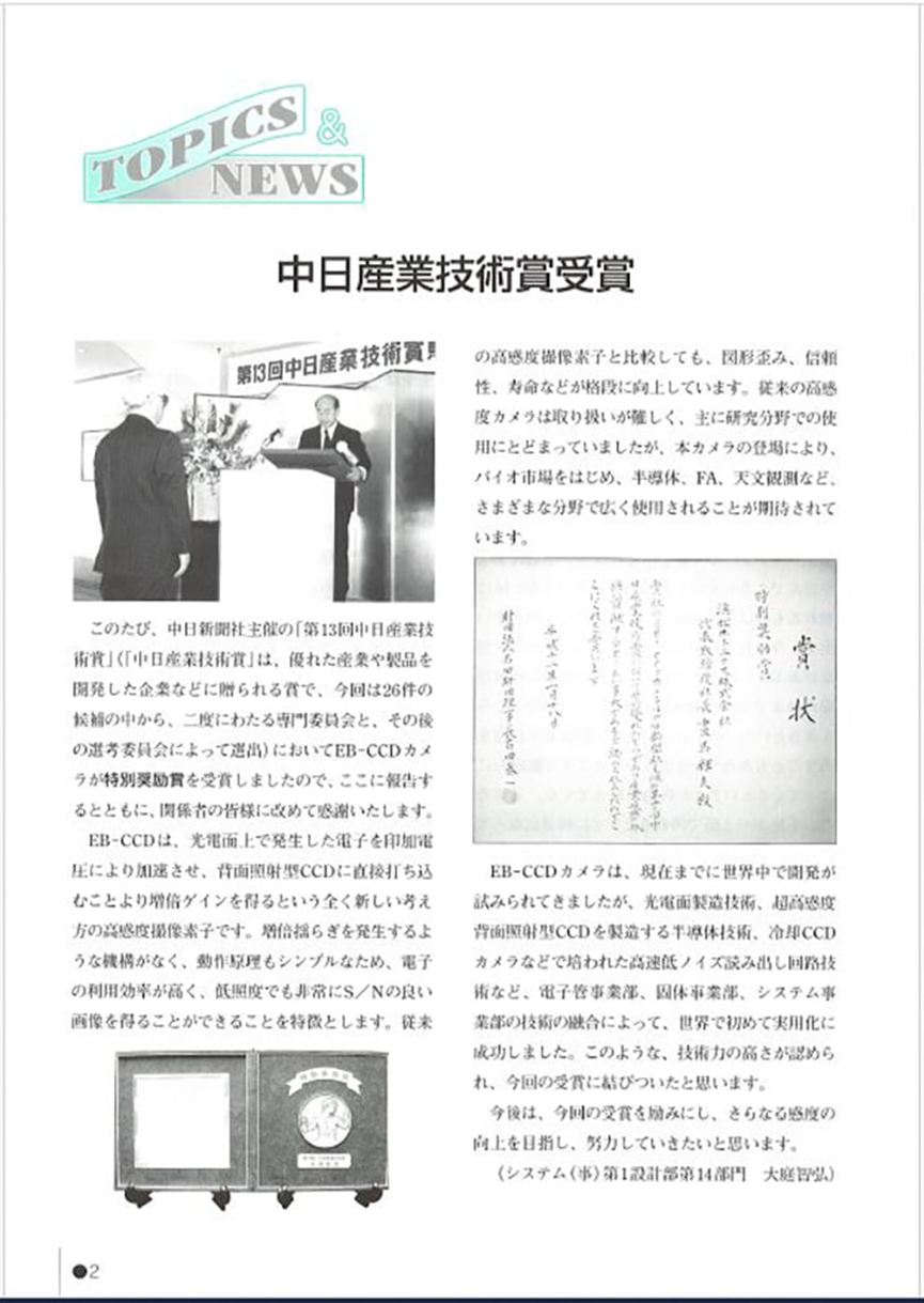 圖5 榮獲中日產(chǎn)業(yè)技術獎(摘自公司新聞簡報第318期,2000年2月)