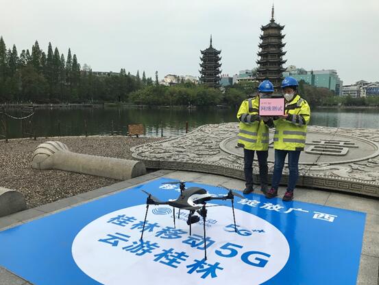 在桂林的兩江四湖,廣西移動工作人員為“5G云游桂林”活動開展網(wǎng)絡(luò)保障工作。徐先麗/攝