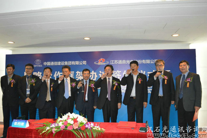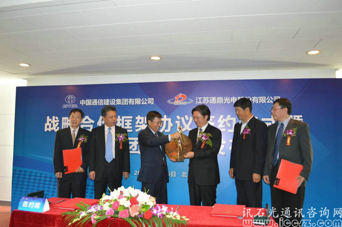 在展覽會(huì)期間,同時(shí)舉行各種論壇,以及各企業(yè)達(dá)成的簽約合作儀式。26日下午,江蘇通鼎光電股份有限公司(以下簡(jiǎn)稱(chēng)“通鼎”)與中國(guó)通信建設(shè)集團(tuán)有限公司(以下簡(jiǎn)稱(chēng)“中通建”)就達(dá)成戰(zhàn)略合作框架舉行簽字儀式,同時(shí)舉行新品發(fā)布會(huì)。會(huì)議主要由七大流程組成,首先是通鼎集團(tuán)新產(chǎn)品介紹,然后是中通建總經(jīng)理致辭講話(huà),緊接著通鼎董事長(zhǎng)為簽約合作會(huì)議致辭講話(huà),然后來(lái)到會(huì)議最重要部分,在大會(huì)來(lái)賓與媒體朋友的見(jiàn)證下通鼎與中通建簽署戰(zhàn)略合作框架協(xié)議!協(xié)議簽署完成之后,簽約雙方簽署產(chǎn)品贈(zèng)送協(xié)議,最后互換禮品以及合影慶祝!
