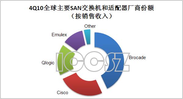 * 2010年第四季度,全球SAN交換機和適配器市場規(guī)模環(huán)比增長10%至7.49億美元;
