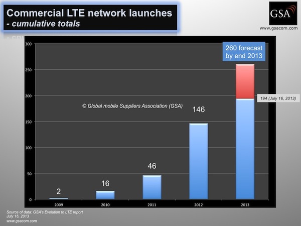【訊石光通訊咨詢網(wǎng)】2013年7月17日,最新的GSA(全球移動供應商協(xié)會)LTE報告指出,有194家運營商在全球75個國家或地區(qū)已正式推出商用LTE服務。