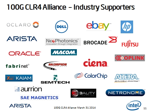 上周在拉斯維加斯的Interop,100G CLR4聯(lián)盟首次亮相。包括Arista網(wǎng)絡(luò)和英特爾公司在內(nèi)的聯(lián)盟成員認(rèn)為行業(yè)一直以來忽視了一個大的機(jī)會,即在大型數(shù)據(jù)中心中部署100G。在這個行業(yè)的大部分注意力都集中在從幾百到幾十公里傳輸距離的100G部署的時候,100G CLR4聯(lián)盟認(rèn)為日益龐大的數(shù)據(jù)中心呈現(xiàn)出了一個不斷增長的機(jī)會,即在100米到2公里傳輸距離中采用100G。