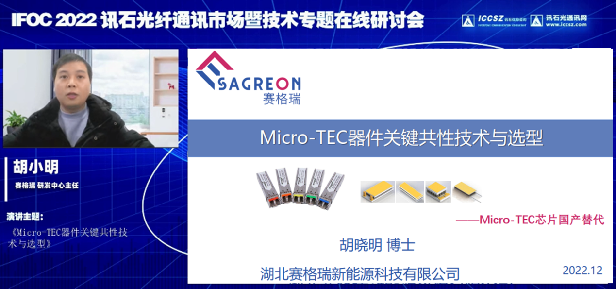 ICC訊 12月28日,在訊石在線研討會上,湖北賽格瑞新能源科技有限公司(以下簡稱:賽格瑞)的胡曉明博士做了關(guān)于Micro-TEC器件關(guān)鍵共性技術(shù)與選型的主題演講。胡博士指出,半導(dǎo)體制冷技術(shù)基于Peltier效應(yīng): 是一種固態(tài)制冷技術(shù),它是利用材料內(nèi)部載流子的運動,直接將電能轉(zhuǎn)換為冷能的一種新型制冷技術(shù)。 當(dāng)兩種不同導(dǎo)體構(gòu)成回路時,若給回路通直流電,則回路中的一個節(jié)點溫度升高,另一個節(jié)點溫度降低。