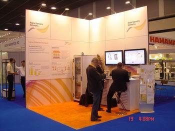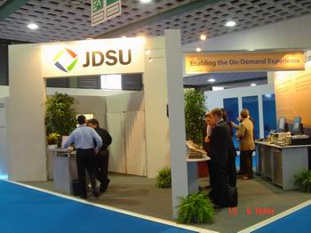 JDSU 展臺周圍時刻出現(xiàn)著“Enabling the on-demand experience”標語.