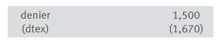 以杜邦的Kevlar® 29為例,其線密度如下。