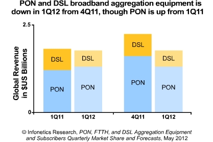 由于Verizon的FiOS和AT&T的U-Verse推出放緩,加之季節(jié)性疲軟,北美PON,DSL,FTTH設(shè)備市場一季度下降21%。