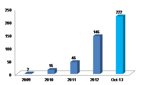 ICCSZ訊 2013年10月22號(hào),據(jù)GSA關(guān)于LTE建設(shè)進(jìn)展的最新報(bào)告,全球已經(jīng)有222家運(yùn)營(yíng)商確認(rèn)在83個(gè)國(guó)家或地區(qū)推出了LTE商用服務(wù)。在過(guò)去的12個(gè)月中共有109個(gè)LTE商用網(wǎng)絡(luò)被推出。