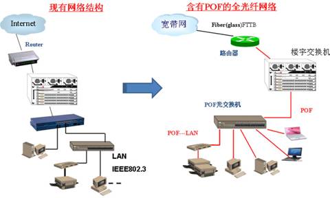 圖1. FTTB+LAN結(jié)構(gòu)中的塑料光纖