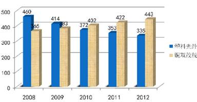 國內(nèi)FTTH產(chǎn)業(yè)的發(fā)展,面臨進(jìn)一步降低成本的壓力,其中接入線纜占FTTH實施成本的25%-30%。國內(nèi)的FTTH接入,多采用烽火科技提出的FTTB+LAN方案,光纖只布設(shè)到樓宇,而樓宇內(nèi)部仍采用傳統(tǒng)的雙絞線,雙絞線的原材料是銅,隨著國際銅價一路上揚,“光進(jìn)銅退”成為必然趨勢。塑料光纖(POF)產(chǎn)業(yè)已經(jīng)發(fā)展多年而市場規(guī)模仍然有限,如今在國內(nèi)FTTH應(yīng)用中發(fā)現(xiàn)了自己的機(jī)遇(國外的FTTH一般是光纖到每戶,塑料光纖機(jī)會很少),正在努力把自己打造成室內(nèi)銅纜的替代品。