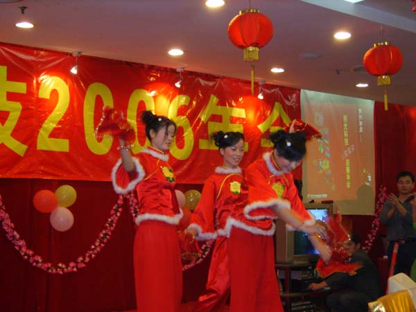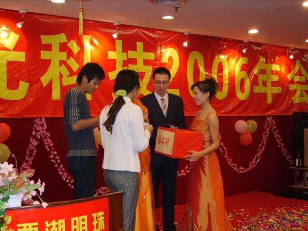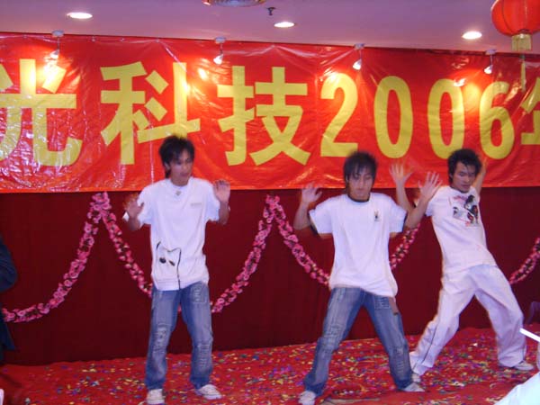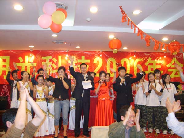 2007年2月9日離舊歷新年不到十天的日子里,朗光科技在西湖明珠酒店舉辦了2006年會。辭舊迎新之際,朗光300多員工都在此聚會。大紅燈籠高高掛,四處彩球飄飛,整個大堂喜氣洋洋。每個朗光人都心花怒放,因為今晚是屬于朗光人自己的聚會,會上不光有自己排練表演的節(jié)目,更有領導表彰員工的環(huán)節(jié)。一年里的忙碌,一年的成就與輝煌,在這次盛大的聚會上,大家都把它寫在臉上,斟在酒杯中。朗光科技是訊石的會員,訊石也作為了特邀嘉賓參加了朗光的年會,共同分享朗光人的喜悅。