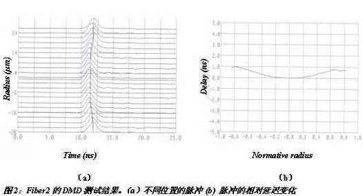 多模光纖的滿注入OFL(Over-filled Launch)帶寬反映的是對光纖在LED光源環(huán)境下的帶寬性能指標,測試時,多模光纖的所有傳導(dǎo)模式均被激發(fā)[6]。而激光優(yōu)化多模光纖的DMD測試必須遵從TIA/EIA-455-220[7]標準。該標準定義了DMD測試的整個過程,包括光源,定位裝置,接收系統(tǒng)以及測試程序。標準要求注入待測光纖的光斑必須是單模的,在850nm波長,其模場直徑約在5mm,而且對光脈沖的時域脈寬和譜寬也做了詳細的規(guī)定??傊瑔文5?,足夠短,以及窄譜寬的光脈沖是好的。同時對定位系統(tǒng)的精度,注入脈沖的耦合條件,以及接收系統(tǒng)的線性和響應(yīng)也給出了各自的要求。需要專門的DMD測試裝置。