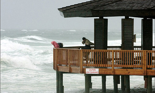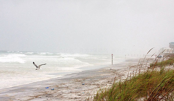 8月17日,美國佛羅里達州德斯坦,岸邊的風吹得游客抬不起頭來。
