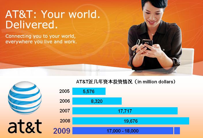 AT&T計劃在2009年投資170億美元到180億美元,基本與其2007年177億美元的資本投資額一致,并且可能超過了美國其它電信運營商的今年的計劃資本開支。