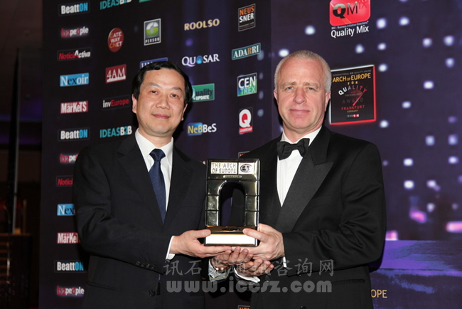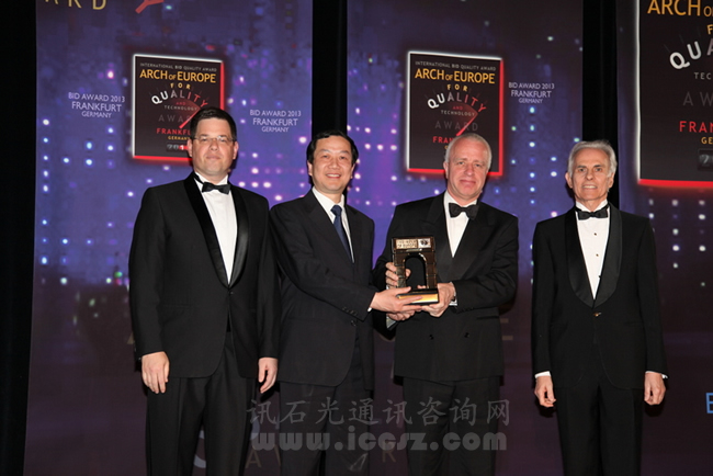 2013年4月27日至28日,長飛光纖光纜有限公司第一副總裁Roger Preston、運(yùn)營管理中心質(zhì)保部經(jīng)理鈕國輝赴德國法蘭克福,參加了由國際著名質(zhì)量評(píng)價(jià)機(jī)構(gòu)Business Initiative Directions (B.I.D) 組織的國際質(zhì)量會(huì)議(B.I.D International Arch of Europe Convention-Frankfurt 2013),并代表長飛光纖光纜有限公司領(lǐng)取該機(jī)構(gòu)頒發(fā)的質(zhì)量白金獎(jiǎng)(IAE International Arch of Europe Quality Award in the Platinum Category)。