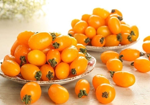 顧名思義,黃色小番茄的外表是黃色的,是無限生長(zhǎng)型番茄。黃色小番茄的外表艷麗,品質(zhì)比較好,果實(shí)硬度比較高,而且特別耐儲(chǔ)存。黃色小番茄酸甜爽口,又叫做黃圣女果,很多人都特別愛吃。