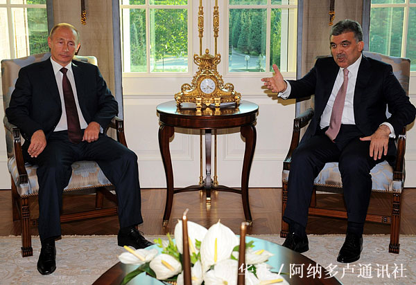 8月6日,在土耳其首都安卡拉,土耳其總理埃爾多安(右)會(huì)見(jiàn)到訪的俄羅斯總理普京。新華社/阿納多盧通訊社