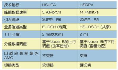 表1 HSUPA與HSDPA技術(shù)指標(biāo)對比