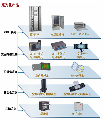 華為公司提供全系列的ODN設(shè)備,覆蓋從OLT到ONT之間的每個(gè)節(jié)點(diǎn),包括ODF、光纜交接箱、接頭盒、光分路單元、分纖盒、光纖插座、弱電箱、網(wǎng)絡(luò)箱等。