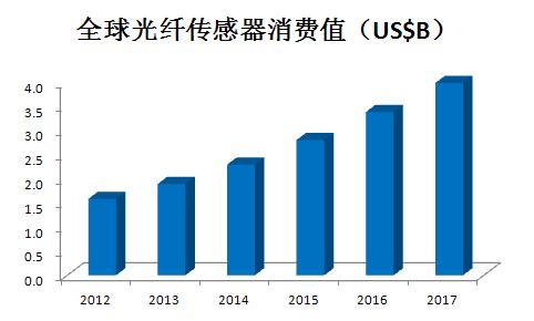 【訊石光通訊咨詢網(wǎng)】來自ElectroniCast的最新報告數(shù)據(jù)顯示,從2012年到2017年間,全球光纖傳感器(包括點(diǎn)分式和分布式)消費(fèi)值的平均年增幅高達(dá)20.3%,其年消費(fèi)值將從2012年的15.8億美元增長至2017年的39.8億美元。