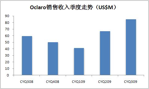 截至2009年9月26日的三個月,Oclaro凈收入同比增加43.2%至2570萬美元,增長主要來自今年4月與Avanex公司合并所產(chǎn)生的收入,與電信業(yè)務密切相關(guān)。三季度電信和先進光學解決方案部門收入分別比去年同期增長2,120萬元和450萬美元。其中先進光學解決方案部門收入同比增加,主要來自New Focus業(yè)務的710萬美元收入。