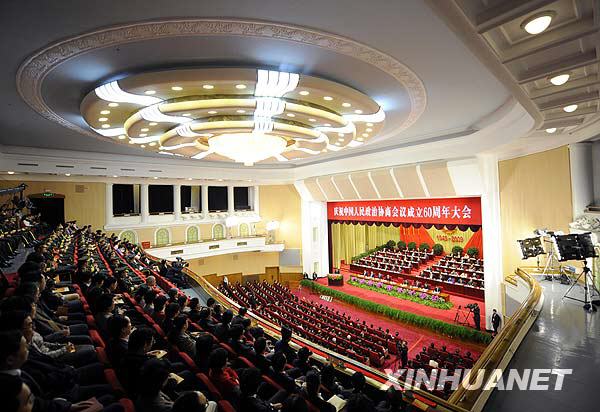 9月20日,首都各界代表900多人在全國政協(xié)禮堂隆重集會,慶祝中國人民政治協(xié)商會議成立60周年。