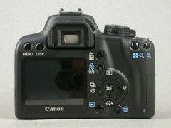 雖然搭載的是23萬像素2.5英寸的屏幕,但佳能1000D機身背面的布局跟450D是一樣的,只是背部右上方大拇指的位置沒有了類皮革材質的包裹,這大概也是基于產品定位的考慮吧。1000D使用的同樣是SD/SDHC存儲卡,鑒于目前大容量的SDHC卡在價格方面一降再降,目前4GB也不過150元左右,使用SDHC可謂是大勢所趨。佳能EOS 1000D三圍尺寸為126 x 98 x 62 mm,機身重量約為450克。