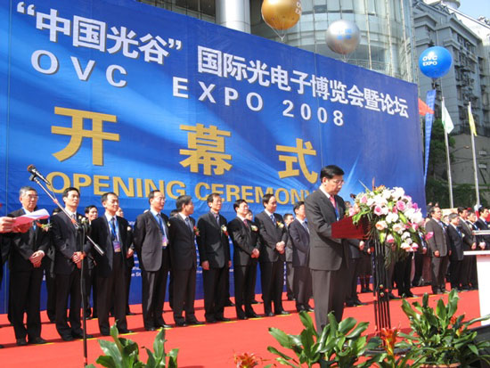 開幕式由武漢市市長阮成發(fā)主持。湖北省省長李鴻忠在致辭中說,本次“光博會”將遵循“立足中部、輻射全國、面向世界”的宗旨,搭建國際光電子產業(yè)合作交流的平臺,通過舉辦高品位的專業(yè)技術論壇和展示光電子領域最前沿的科技成果,促進國內外光電子企業(yè)的交流與合作,實現互利共贏。