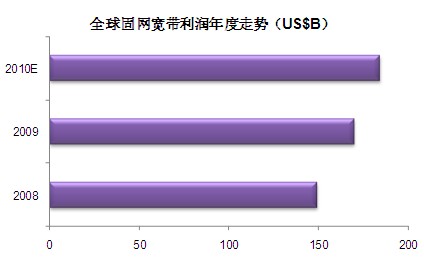 據(jù)ABI咨詢的報告,全球固網(wǎng)寬帶服務(wù)利潤09年已達(dá)1700億美元,年增長率為14%。