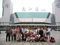 次日早上9:30分,列車抵達(dá)九江站,怎么能錯(cuò)過(guò)這樣個(gè)留念的機(jī)會(huì)呢?瞧!合影中我們的笑臉多燦爛,有誰(shuí)不為之心動(dòng)呢?