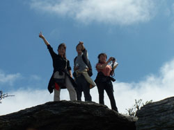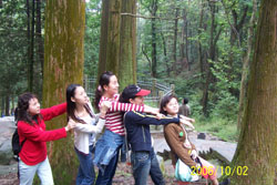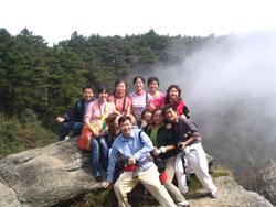 五老峰,三疊泉的景色更是美不勝收。大家一個(gè)個(gè)汗流浹背,卻沒(méi)有一句怨言。纜車的誘惑沒(méi)有了它的魔力,我們毫不猶豫地選擇了徒步。一路上細(xì)雨蒙蒙,山澗水流聲與大自然的和諧自然地融為一體,儼然一幅動(dòng)態(tài)的山水畫(huà)。放松心情,享受自然。那一刻,喜悅與歡呼同在。