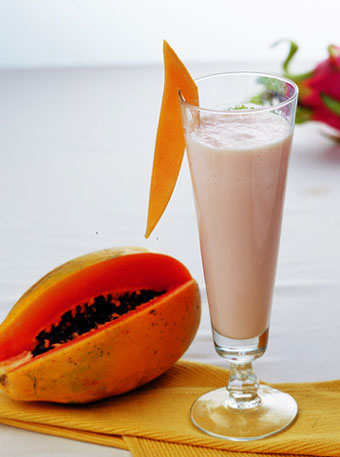 木瓜有“百益之果”、“水果之皇”的美稱,其實,作為水果食用的木瓜實際是番木瓜,其果皮光滑美觀,果肉厚實細(xì)致、香氣濃郁、汁水豐多、甜美可口、營養(yǎng)豐富。其所含的主要營養(yǎng)素有蛋白質(zhì)、B族維生素、維C、鐵、鈣、磷、鉀、鎂、膳食纖維、1:0余種氨基酸,如亮氨酸、苯丙氨酸、天冬氨酸、谷氨酸、纈氨酸等,以及多種有機(jī)酸(如齊墩果酸、蘋果酸、酒石酸、檸檬酸等)。其中胡蘿卜素及維生素C的含量較高,是西瓜及香蕉的5倍??梢姡竟?“百益之果”的美稱真是名副其實的。木瓜為四季皆宜的水果,還具有極高的藥用保健作用。中醫(yī)認(rèn)為,木瓜性寒、味甘、無毒,具有平肝和胃、舒筋活絡(luò)、通便利尿、消腫催乳、祛暑解渴、潤肺止咳、降血壓、解酒毒以及養(yǎng)顏等作用。