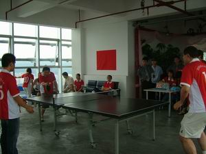 本次乒乓球賽分男女單打和男女混合雙打,共有40多名光通訊業(yè)界人士參加。女子單打冠軍由中國網(wǎng)通深圳分公司的卜杰奪得,亞軍為深圳騰天科技的鄭泓,訊石公司的吳娜贏得季軍。男子單打人數(shù)較多,競爭激烈,驊國電子的王盛賢專程從東莞趕來參加比賽,他的球技高超,幾場下來所向無敵,贏得了男子單打冠軍。男子亞軍和季軍分別為光纖在線楊宇定、訊石公司羅永。