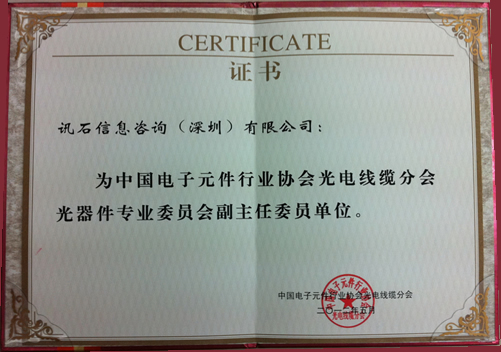 5月10日,2012’光纖光纜及光器件產(chǎn)品技術(shù)研討會暨光器件專業(yè)委員會成立大會在上海召開,訊石信息咨詢(深圳)有限公司當(dāng)選為副主任委員單位。