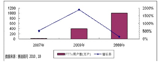 圖3 2007-2009年中國(guó)FTTx用戶(hù)數(shù)量