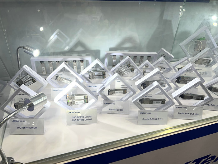 中科通信總經(jīng)理王苗慶向訊石介紹,公司本次展出了應(yīng)用于數(shù)據(jù)中心互聯(lián)、5G無線互聯(lián)、接入網(wǎng)和FTTR的全系列光模塊及光器件產(chǎn)品。