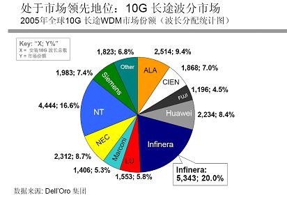 圖1 2005全球10G長途波分市場份額(按實際部署容量計算