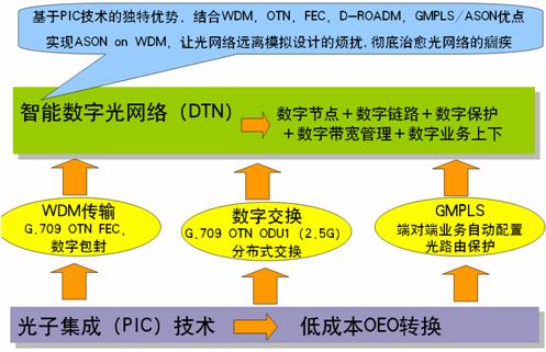 圖3光子集成技術(shù)和Infinera 的智能數(shù)字光網(wǎng)絡(luò)的關(guān)系