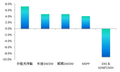 圖:光網(wǎng)絡設備細分市場CAGR(2013-2018)