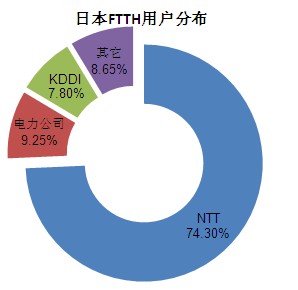 其中FTTH用戶達到1719.6萬戶,與2008年底相比增長278萬戶,從整體上看,運營商的FTTH 契約數市場份額與2008年相比基本持平。NTT東西公司所占市場份額與去年年底相同,為74.3%,電力公司為9.25%,減少0.2個百分點,KDDI增長0.2%,達到7.8%。