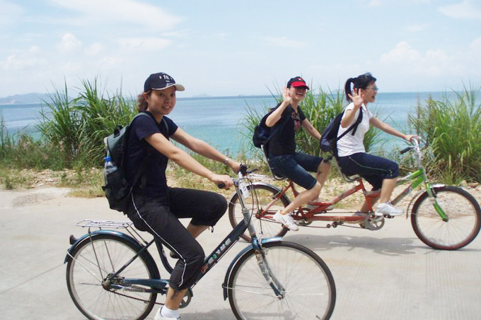 【活動暢想】:當(dāng)雙人自行車在美麗的沿海公路緩緩前行,海風(fēng)飄動你的黑發(fā),發(fā)稍后是你初識的好友或是你的至愛或是你的孩子,而眼前是藍藍的大海,心是如此的輕,所有生活中的繁瑣都不見,唯有寫在你臉上的幸福與滿足——快樂有時真得很簡單!