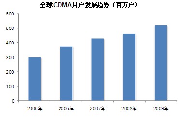 近期統(tǒng)計數(shù)據(jù)表明,截止到2009年第三季度末,CDMA2000的用戶達(dá)到5.18億;EVDO全球用戶為1.42億,其使用量以約27%的增長率在不斷增長。同時,有27%的CDMA2000用戶使用EVDO設(shè)備和服務(wù);CDMA2000總共占有全球3G市場55%的市場份額。此外,CDMA2000將繼續(xù)保持強(qiáng)勁的增長勢頭,到2014年用戶數(shù)將累計達(dá)到7億。