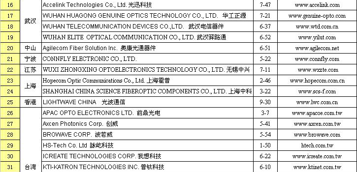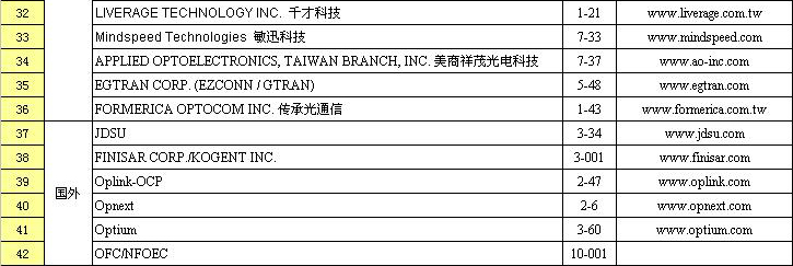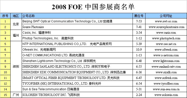 中國展商的顯著增加成為了一大亮點(diǎn)。本次FOE展會(huì)中國內(nèi)地共有二十多家企業(yè)參展,臺(tái)灣地區(qū)有十幾家企業(yè)參展。相比2007年的參展情況臺(tái)灣地區(qū)參展商沒有顯著的變化,但中國內(nèi)地展商增加近一半,除了世維通、高意科技、昂納通信、深圳朗光科技、日海通信、WTD、武漢光迅、奧康光通器件等幾家兩年都有參展外,今年新增加了深圳萬和電子、深圳迅達(dá)康、泰科光纖、飛陽科技等上十家新公司參展,通過產(chǎn)品分析這些新展商大部分以連接器、PLC、耦合器等無源器件為主,這些新的國內(nèi)企業(yè)也紛紛開始試水FOE希望打開日本市場(chǎng),尋求新的商機(jī)。飛博創(chuàng)首次以Source Photonics名義亮相FOE。