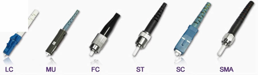sc:方形光纖接頭,F(xiàn)C:圓形帶螺紋,ST:類似BNC,LC:收發(fā)分離結(jié)構(gòu),MT-RJ:方形,一頭雙纖,收發(fā)一體