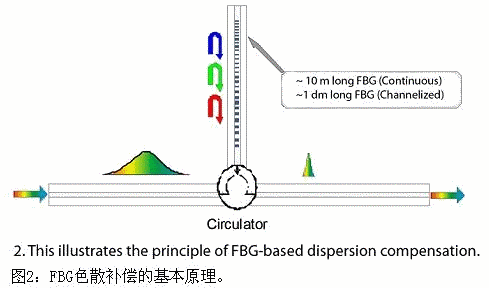 FBG和色散補償原理的圖形化描述如圖1和圖2所示。