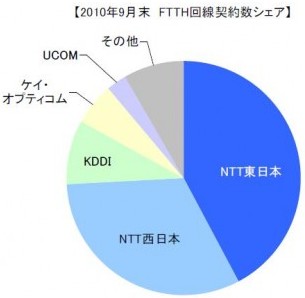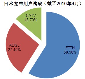 從運營商來看,NTT東西的FTTH用戶占據(jù)約74.1%的市場份額,共有FTTH接入用戶1424萬,2010年上半年凈增98.9萬FTTH用戶,2009年上半年凈增114.4萬,用戶增長速度有所放緩。
