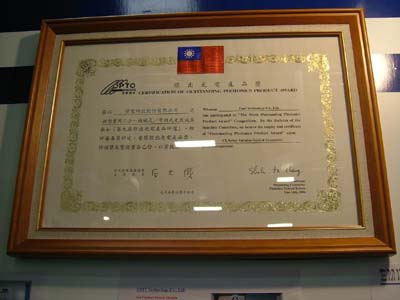今年“臺北光電周”系列展覽與“臺灣平面顯示器展”共有超過500家國內(nèi)外廠商來共享盛舉,攤位數(shù)高達(dá)1300多個,再創(chuàng)歷年新高。而此次盛會參觀人數(shù)將近三萬。此外,展覽活動還搭配第九屆“十大杰出光電產(chǎn)品獎”選拔與頒獎等系列活動,其中光無源器件廠商偉電科技股份有限公司的“新型實用二合一機械式/可調(diào)式光衰減器”榮獲杰出光電產(chǎn)品獎(如圖)。