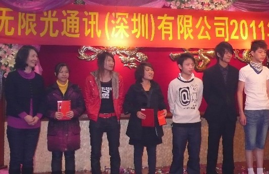 2011年1月15日晚消息,無限光通訊(深圳)有限公司(ADF)2011新春晚宴在深圳市寶安區(qū)榕江漁村隆重舉行。此次晚宴參會主體人員為無限光公司的全體員工,也邀請了包括深圳澤萬豐,泰科微,恒寶通,飛普科技,易飛揚,中葛科技,深圳億源通,深圳麥通,北京國瑞升等眾多光通訊企業(yè)客戶。訊石很榮幸應(yīng)邀參加此次年會。