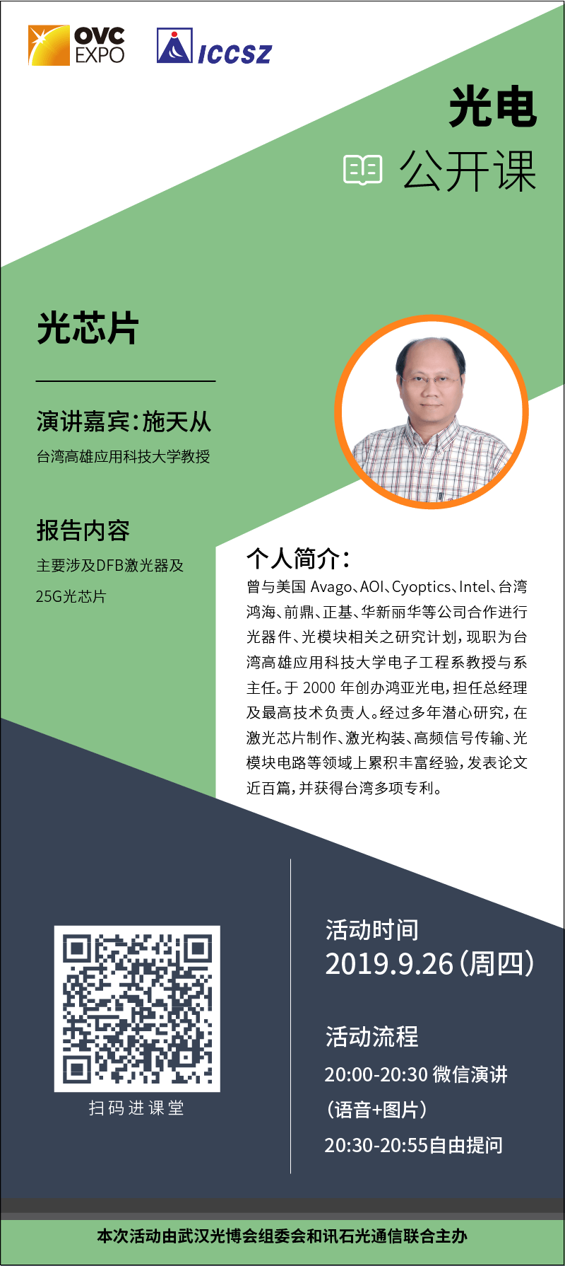 活動時間:2019.9.26(周四)活動流程:20:00-20:30 微信演講