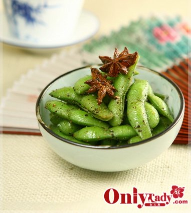 毛豆:它是植物蛋白質(zhì)的重要來源,也提供植物類雌激素及纖維素。半份去皮毛豆含有120卡的熱量,是非常好的小菜。吃法:先蒸一下,再放入鹽水中,用微波爐加熱2—3分鐘,此時,豆與莢已經(jīng)分離,可以放心享用了。