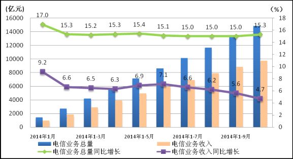 圖1.2014年1-10月電信業(yè)務(wù)總量和電信業(yè)務(wù)收入發(fā)展情況